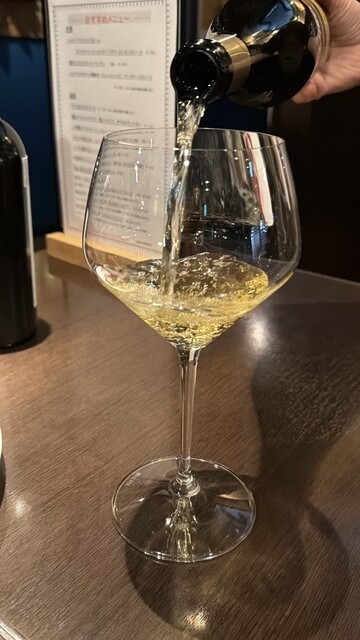 いよいよワインに手を伸ばす時が来た。今日の主役は、グラスに注がれた黄金色の輝きを放つdi Lenardo "Father's Eyes" Chardonnay。イタリア・フリウリ産のこの白ワインは、エレガントなアロマと果実味豊かな味わいが特徴だ。爽やかな酸味がアミューズの繊細な風味を一層引き立て、次への期待を高める。