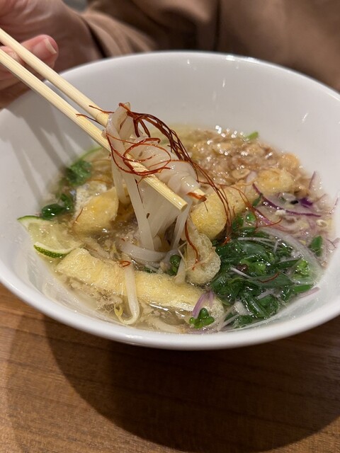• ヘルシー満足感: つるんとした喉越しの米粉麺(フォー)は、お腹にしっかり溜まるのに重くない、カフェランチにぴったりの一杯です。
