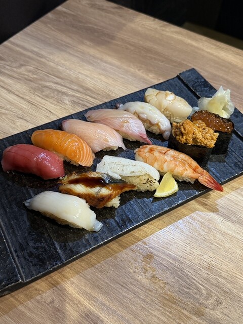 メインディッシュは、堂々たる**「冨士盛り握り12貫」。
