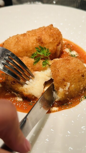 お腹がいっぱいでも不思議とスルスル入ってしまう、魔法のリゾット。お米の芯の残し具合が完璧で、チーズの濃厚なコクが最後まで多幸感を演出してくれます。