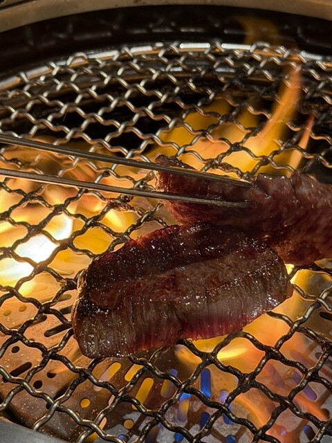 特選のザブトンは、焼き師の方からのアドバイスに従い「片面よく焼き」で。香ばしさととろける食感のコントラストは、まさにプロの提案があってこその体験。