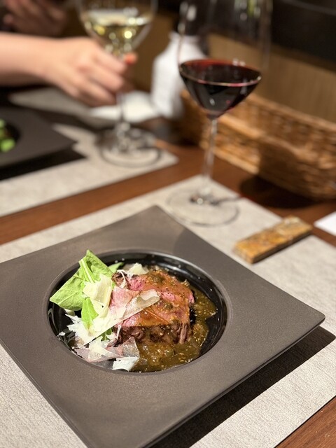 熊本県産の鮮烈な馬肉を、ケイパーや玉ねぎの清涼感とともに味わう贅沢。ガーリックトーストの力強い香りが、馬肉の甘みをより一層際立たせ、思わずワインが進みます。