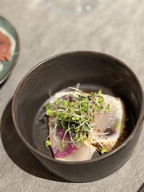この日は旬のイチゴが添えられ、生ハムの塩気が果実の甘みを最大限に引き出します。シンプルながらも、素材の質の高さがダイレクトに伝わる、期待を高めるスターターです。