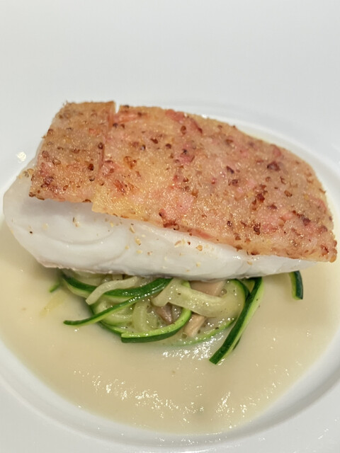 真鯛のヴァプール マスタードのヴィエノワーズ 新玉ねぎのクレーム