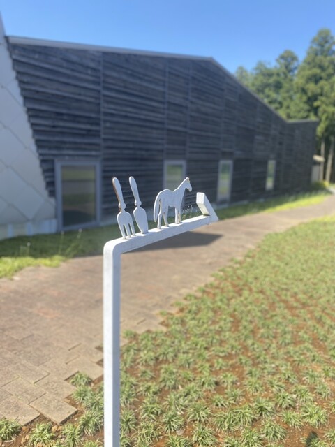 ゴルフ場クラブハウス前のサイン。オシャレです。