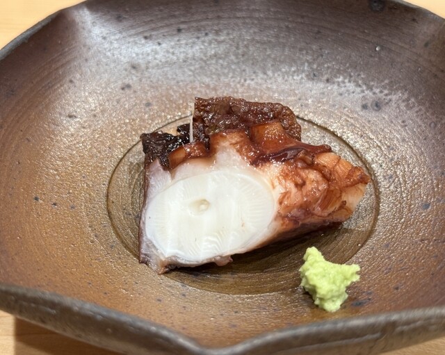 鮑(肝ソース付、残してシャリを追加してもらいます。旨み爆発)