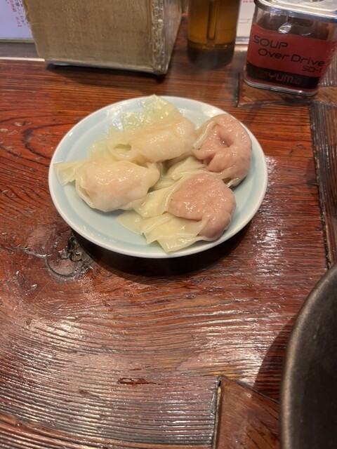 ワンタンも秀逸。肉ワンタンはほんのり生姜が香り、肉の旨みがギュッと詰まったジューシーさ。エビワンタンはぷりっぷりの食感で、しっかり存在感ある海老の風味が広がります。このクオリティでこの価格、ボリュームも満点で本当に大満足。途中、卓上の辛味調味料を少し投入して味変。これもまた美味しく、最後までスープを飲み干してしまいました。やっぱり名店は違います。
