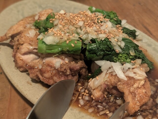 鰯フライが塩と粒マスタードで食べたら、白州のハイボールとのマッチングが本当に良かったです。そして秀逸なのは、まさかの油淋鶏が文句なく美味しい!またなんど多分塩バターの卵焼き!添えられてた大根おろしに出汁で味付けしてあるのが付けずに食べても、付けて食べてもシンプルで美味しかったです。あとは鴨のシュウマイも…まぁー本当に隙なく、全部美味しかった。語彙力無くて申し訳ないです。本当においしかったです。