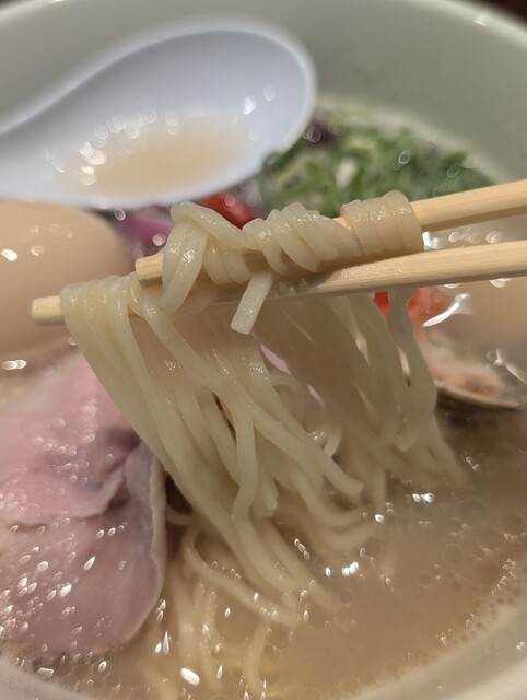 らぁ麺は、事前に撮っておいた写真では蛤が沈んでしまっていて、若干悲しい見た目。