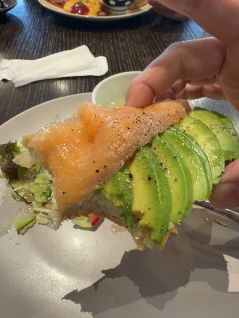 アボトーストはサーモンとアボカドが乗ったトーストで美味しい♫
