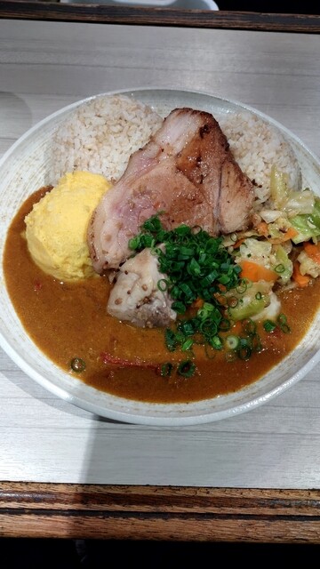 ルーは適度なスパイスに加えて、コクがスープの深い甘みのあるカレー、以前食べた限定の何かに似ている、とにかくオイシイ