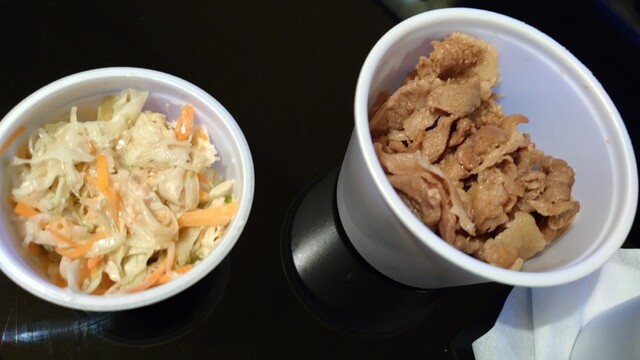 松坂ポークのローストポークは2切れ、糞デカイ、今日のは珍しく生姜焼きっぽくて、いつもの上質な豚の感じはなかったかな