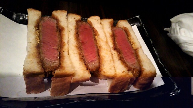 これはこの世のサンドイッチの王様、甘いパンにレア気味なカツ、ジューシーな肉と素朴なパンが極上の一言