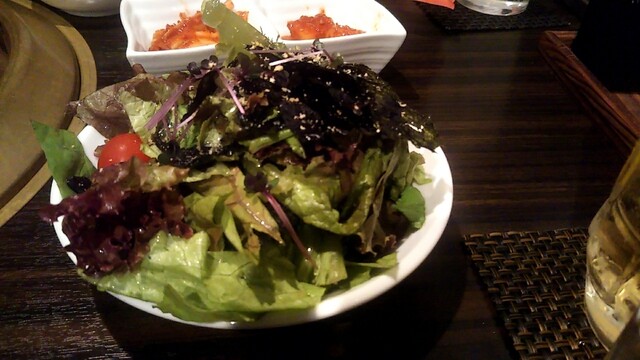 ・前菜3種類(ビーフシチュー、キムチ、サラダ)