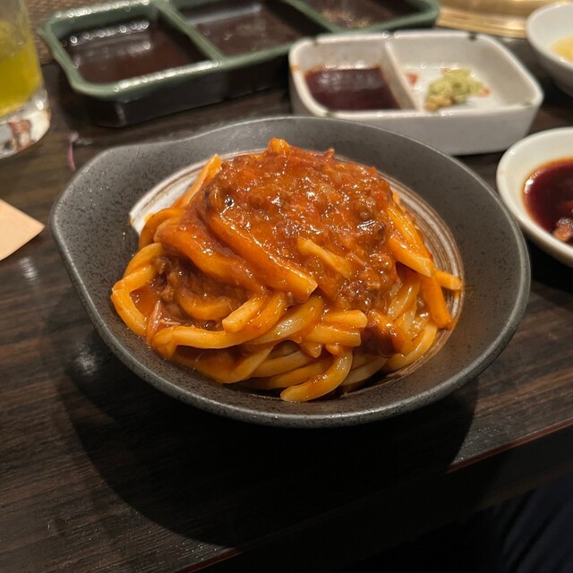 この店は、焼肉だけなのは勿体無いと思わせるハイレベルなパスタ、特注の太麺に、ヒレの旨味がたっぷりのミートソース、大満足