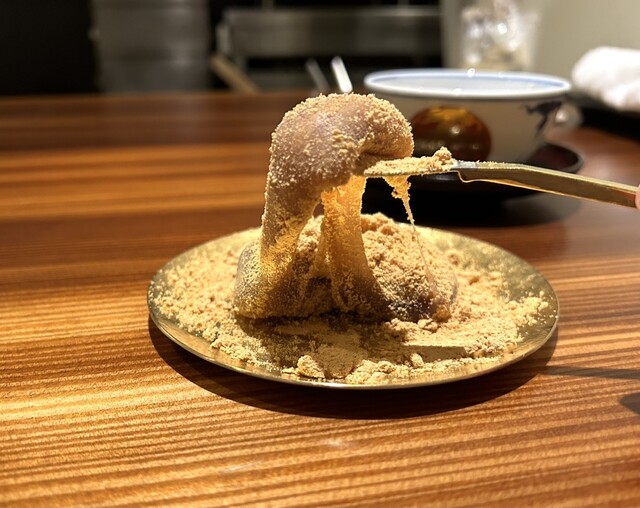 目の前で作ってくれるわらび餅。
