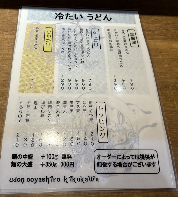 このうどん、基本は350gですが、プラス100gまで無料なんですって!