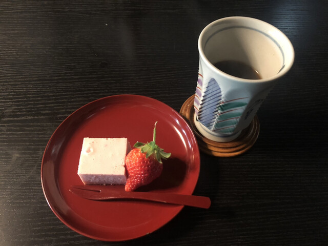 料理は前菜から焼物、揚物、じゃこご飯、味噌汁、香の物、そして大きな苺と苺ムースのデザートまで、ちょうど良い塩梅で進んでいき、心地良く堪能できました。