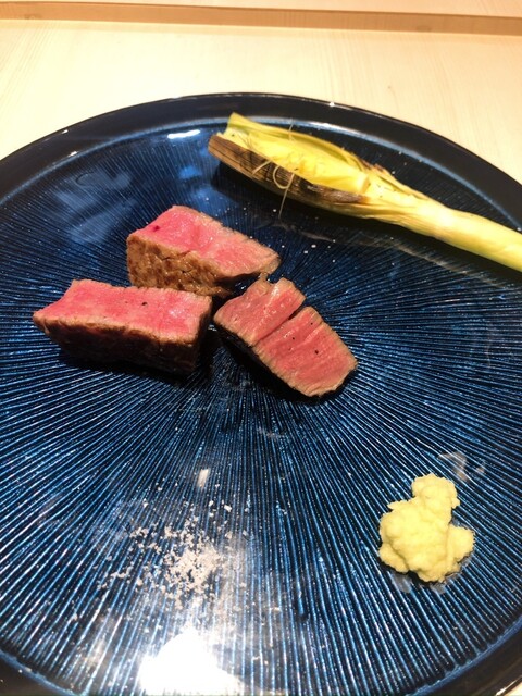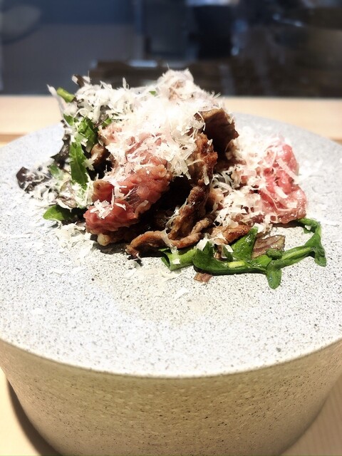 すぐに、炭で軽く炙った牛ヒレを使ったカルパッチョ。