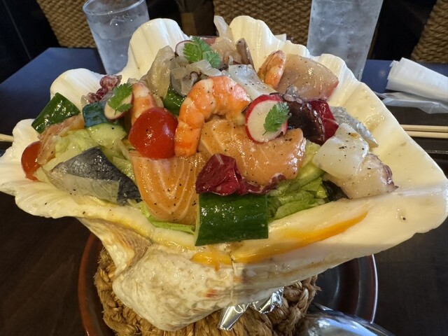 今回はシーフードサラダも追加。見栄えすごいっすね。海鮮もたくさん入ってて美味しいです。
