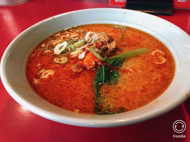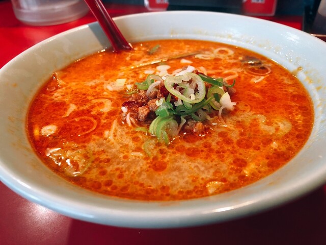坦々麺には、ラー油を足して、辛さ増し増しにしたら、汗がわき出てきました。