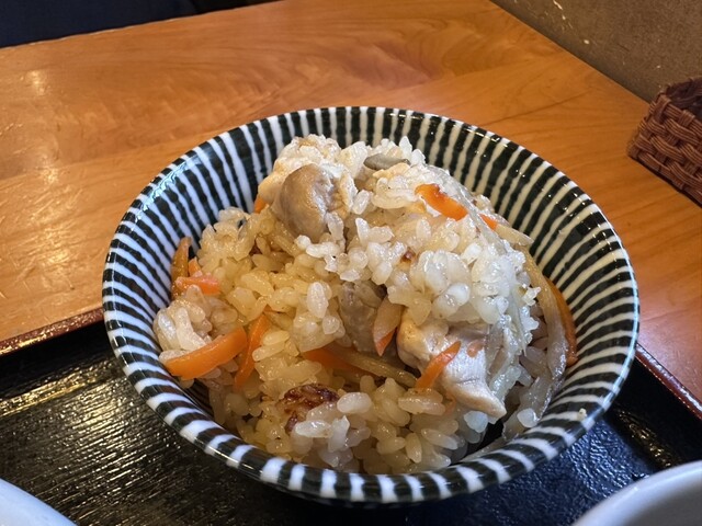 鶏の旨味がしっかり染み込んだご飯は、うどんとの相性も抜群。これだけを食べに来たくなるほどのクオリティです。