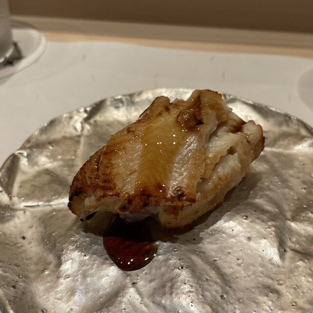鯵、平貝(磯辺焼き風)と続き、その後も握りとおつまみがランダムに出てくる20品ほどのコース。