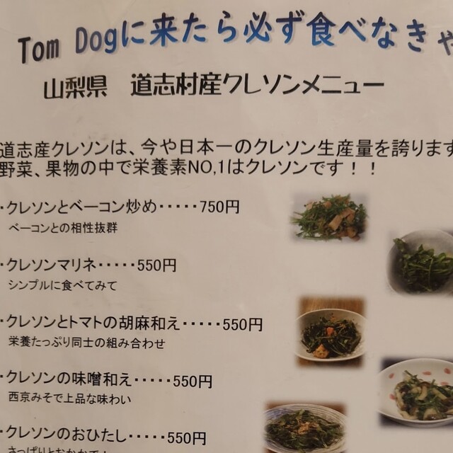 道志村産のクレソンを使ったサラダをはじめ、クレソンがとても美味しく食べられます。野菜好きには堪りません。焼きカマンベールチーズも絶品です。ワインに合うツマミが豊富、ログハウスの雰囲気に会話が弾み、楽しいひと時が過ごせました。料理提供に時間がかかる、とのことでしたが、訪問時は気になることはありませんでした。少人数での席のみ予約は出来ませんが、近隣の宿に素泊まりやディナー無しで泊まったら、是非訪問してください!
