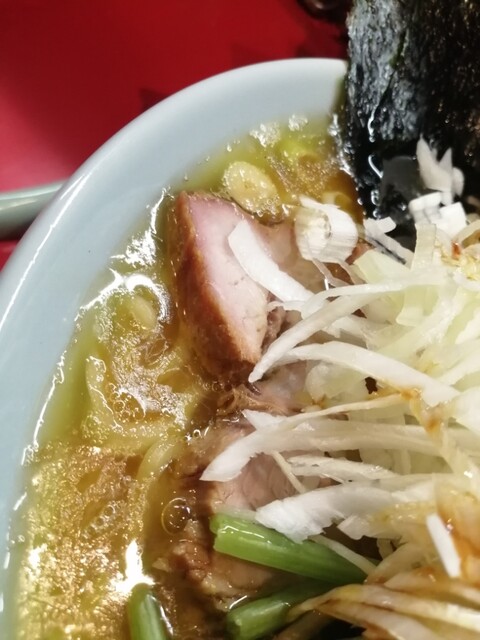 アブラ多めコールでのスープ表面。鶏油が良い仕事しています。