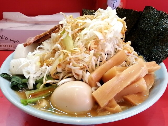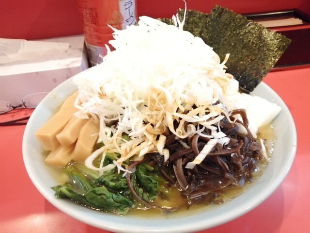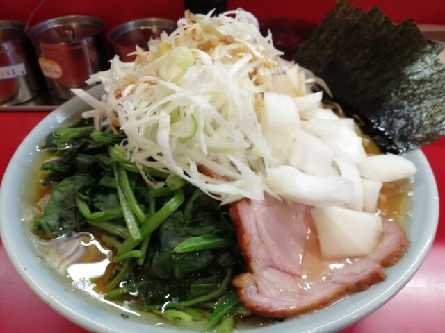 大盛チャーシュー麺+白ネギ+ほうれん草+玉ねぎ+メンマで締めて1,940円。