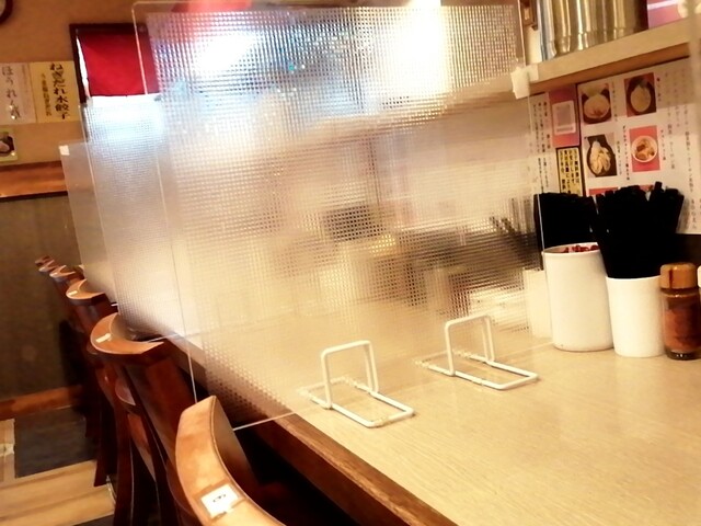 カウンターが多いこのお店には隣席と区切るパーテーションがあるが、