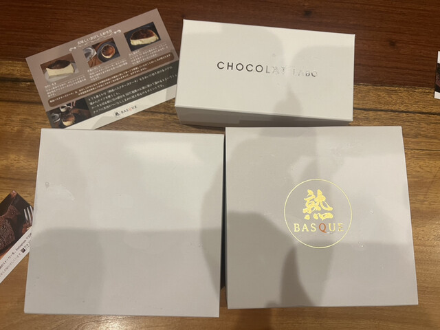 購入したのはバスクチーズケーキの熟成と非熟成の食べ比べセットとガトーショコラ。ケーキは冷凍されていて、