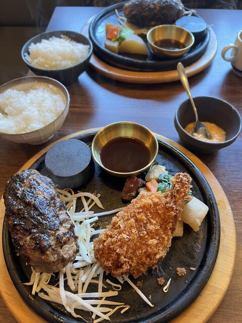 息子 炭火ハンバーグと自家製エビクリームコロッケL(250+50g)