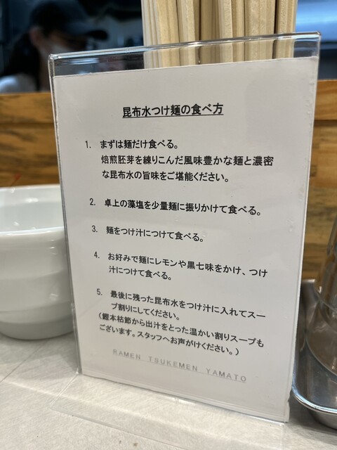 つけ麺を注文!昆布汁?なんでも2種類の昆布を浸して出汁をとっているそうです。汁糸を引くようなは滑り気がある。麺はお店のおすすめにもあるようにまずは何も付けずに麺だけで。蕎麦のような雰囲気。次はお塩だけでいただく。最後はつけ汁につけて。どのパターンも最高です。なんといっても何も付けずに食べたときの感動がある。これで980円は安い。お仕事丁寧系の一杯に出会いました♂️