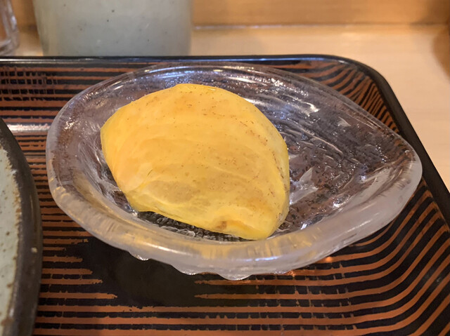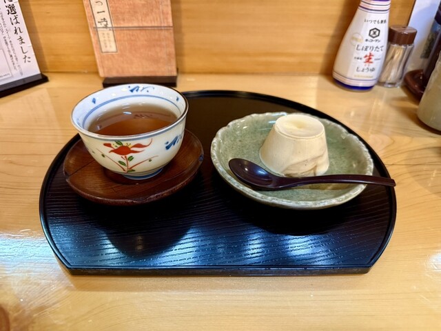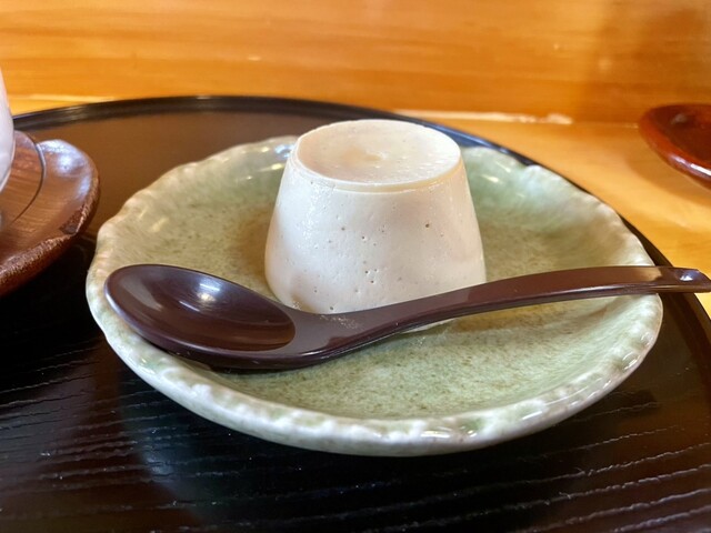 • 〆のデザート‼️ 焙じ茶とアロウカナババロア…(#^.^#)