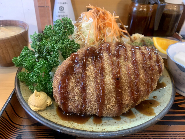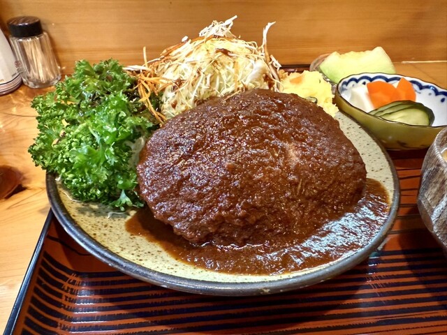 かわらぬ味 とんかつ一幸さん♡とんかつと並ぶ♡不動の人気メニュー至高のハンバーグを横綱級300g‼️で…(^O^)