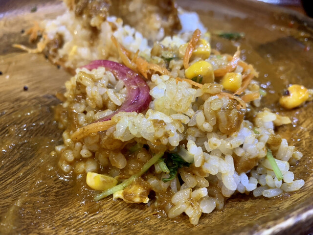 香り豊かなスパイスの風味が感じられて、お肉の旨味…スパイスの香り…そして、それぞれ3種のソースの味と合わさり…ライスとの相性抜群