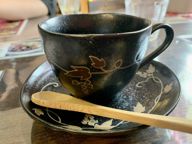 ごちそうさまでした コーヒーカップと、ソーサー(受け皿)のデザイン 植物の蔦(ツタ)が繋がっててるように… 写真を撮ってみました〜♪