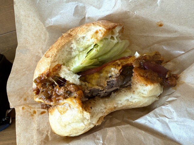 香ばしい♡バンズの食感♡に、お肉の旨み♡食感♡、新鮮な野菜の食感と風味に、チリミートビーンズの旨みがひとつになり、口の中で舞い踊る…まさに、肉の日祭り‼️…(*´꒳`*)