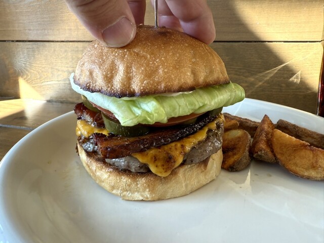 春日部駅 東口 The goodies さんにて、2025年の食べ納め♡ ハラペーニョ・バーガー♡ スモークベーコン♡トッピング♡