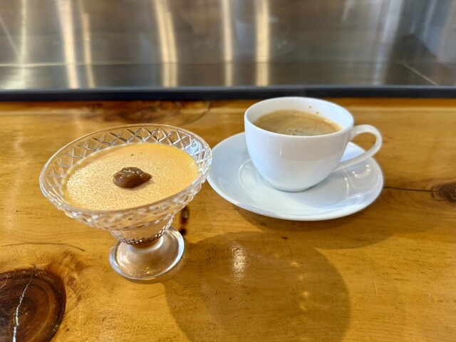 食後のデザートと珈琲♡。デザートは、濃厚なめらかぷりん♡
