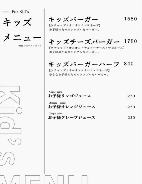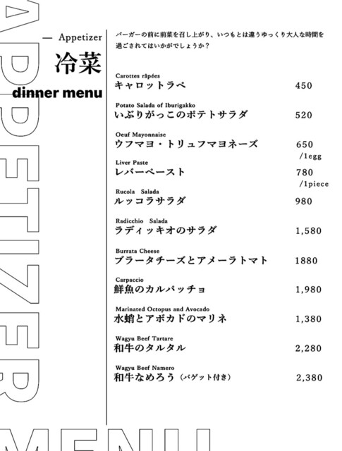 ※ 11月に入り、事前予約制の、3種類のコース料理も始まりましたので、ハンバーガーだけでなく、他の料理やお酒を楽しみたい方は、こちらもお勧めします。・:*+.\(( °ω° ))/.:+