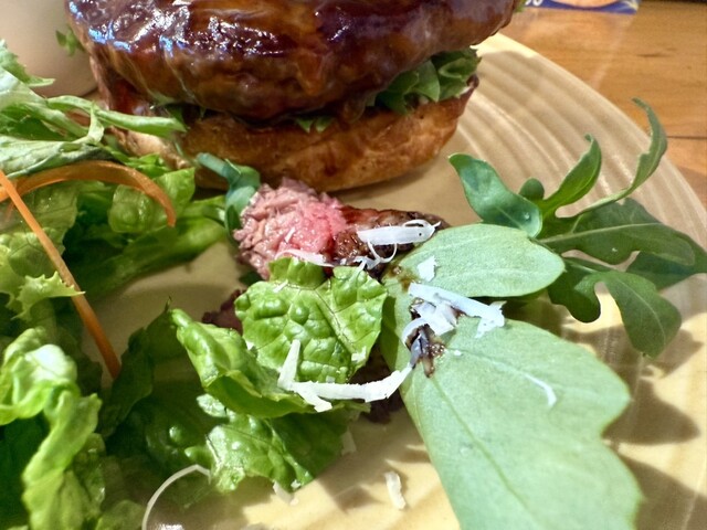 パティの焼き加減は、通常ミディアム・レア♡ 注文時に、焼き加減を伝えると、変更出来ます♡