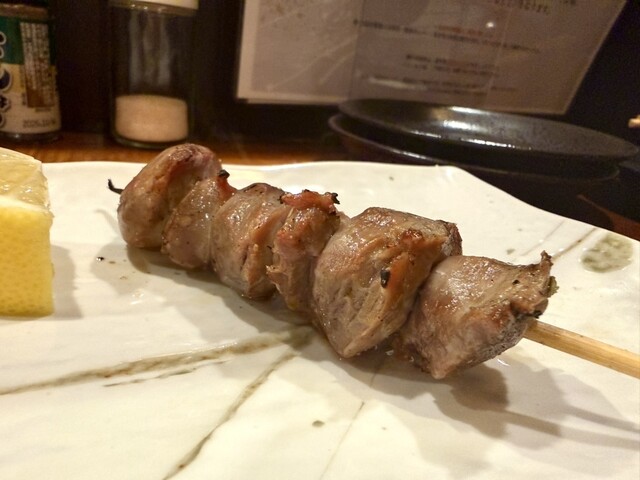 次に焼き物からは、お肉のやわらかい食感♡と旨みが広がる♡笹身(塩・わさび)、コリコリした食感♡と旨みが楽しめる砂肝(塩)、お肉の旨みとネギの風味が、心をほっこり♡させてくれる、ザ❗️焼鳥♡ねぎ間(秘伝のタレ)♡