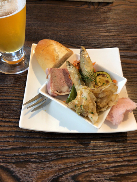 テリーヌ、ワカサギとホタテのマリネ、ハムのディップと、どれも美味しい