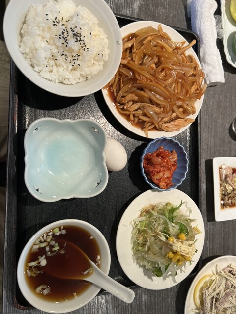 前菜に、ネギとチャーシューのマヨネーズ和えのような物、