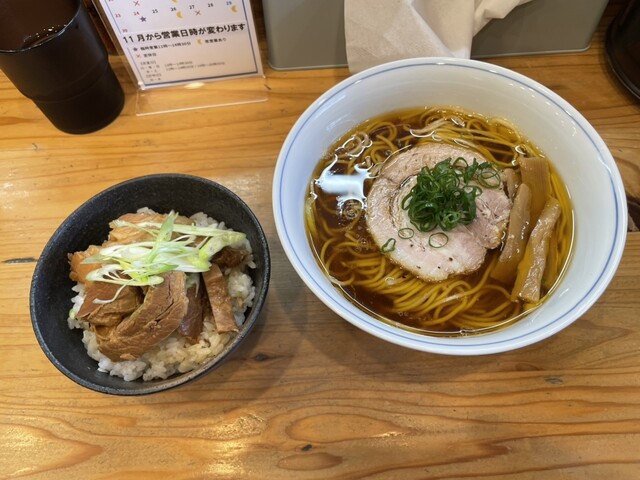 良いルックスです。レンゲを持ってスープからいただきます。 ん。 あれ。 醤油のコク、奥行きが前よりもなくなっていますね。さっぱりに変わっています。前のほうが好きかなぁ。麺も見た目もっと光っていた様な。ごちそうさまでした。