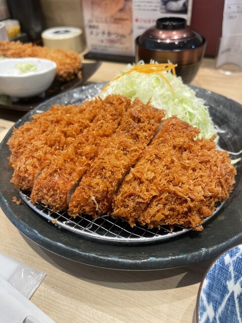 とんかつはジューシーで甘く、申し分ないお味。あじフライは肉厚でふっくらした食感で、生まれて初めて食べるあじフライでした。驚いたのは米です。釜炊きのふっくらもっちりで甘味のあるご飯も最高でした(ご飯・キャベツお代わり自由)