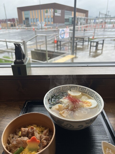 美味しいという比内地鶏の塩ラーメンと名物鶏めしのセットを注文しました。