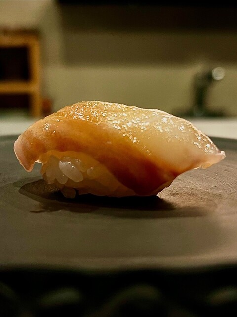▪️中トロ炙り→ これまた魚の旨味の強さに驚いた。熟成させすぎないんだって。色んな方法があるんだね。熟成鮨信者だったんだけど考えを改めました笑